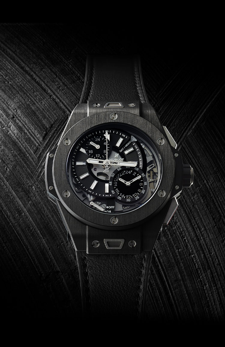 完全な透明度を実現したウブロ独自開発のサファイアクリスタルを、スピリット オブ ビッグ・バンに採用。搭載する手巻きトゥールビヨンCal.MHUB9006のスケルトナイズによる透明性と、時分針とインデックスを際立たせることで時刻の視認性を両立させたウブロの創造力と技術力が堪能できるモデル。パワーリザーブ約5日間(120時間)。